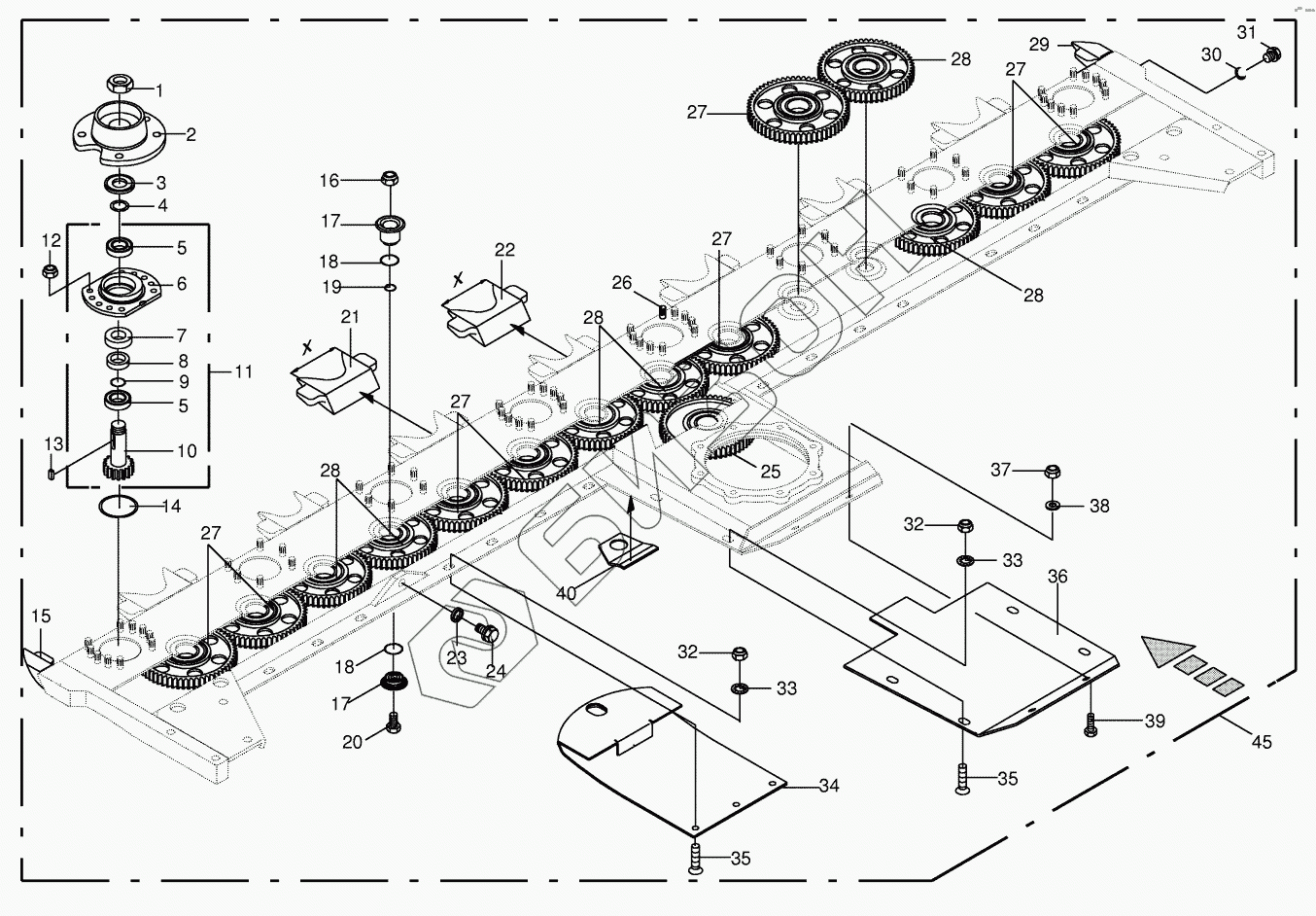 | 11 | 002530213 | Bearing housing-10 hole, single |