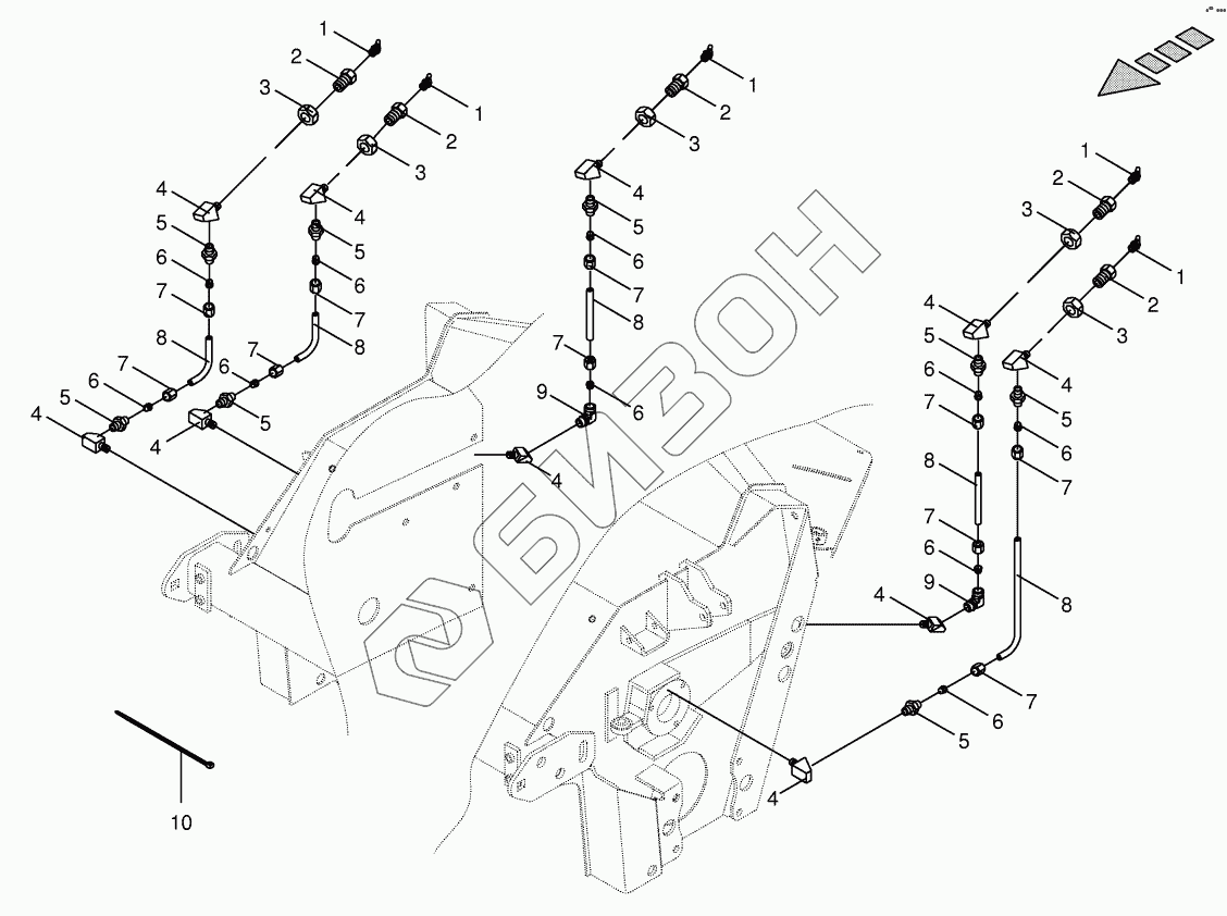 Графический каталог запасных частей к технике: KRONE BIG-M-II. Lubricating line - front CRI