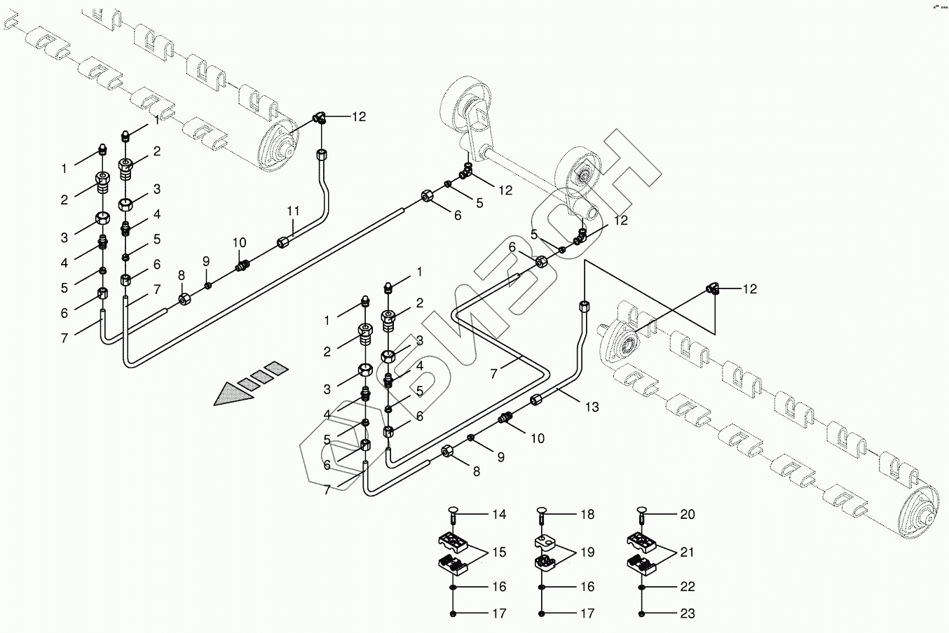 Графический каталог запасных частей к технике: KRONE BIG-M-II. Tine conditioner Lubricating line CV