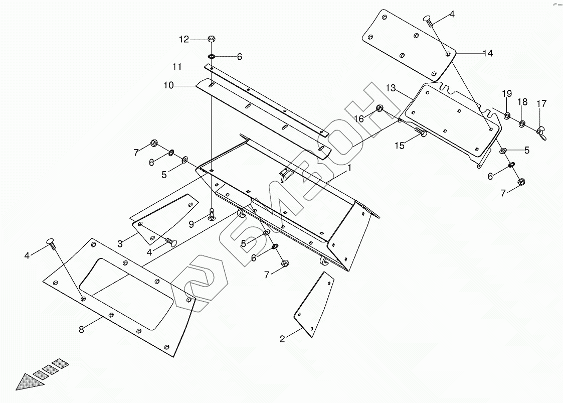 Графический каталог запасных частей к технике: KRONE BIG-X-1000. Cracker duct-pivoting 701805-745500