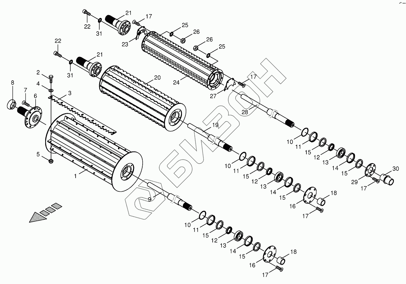Графический каталог запасных частей к технике: KRONE BIG-X-1100. Top feed rollers