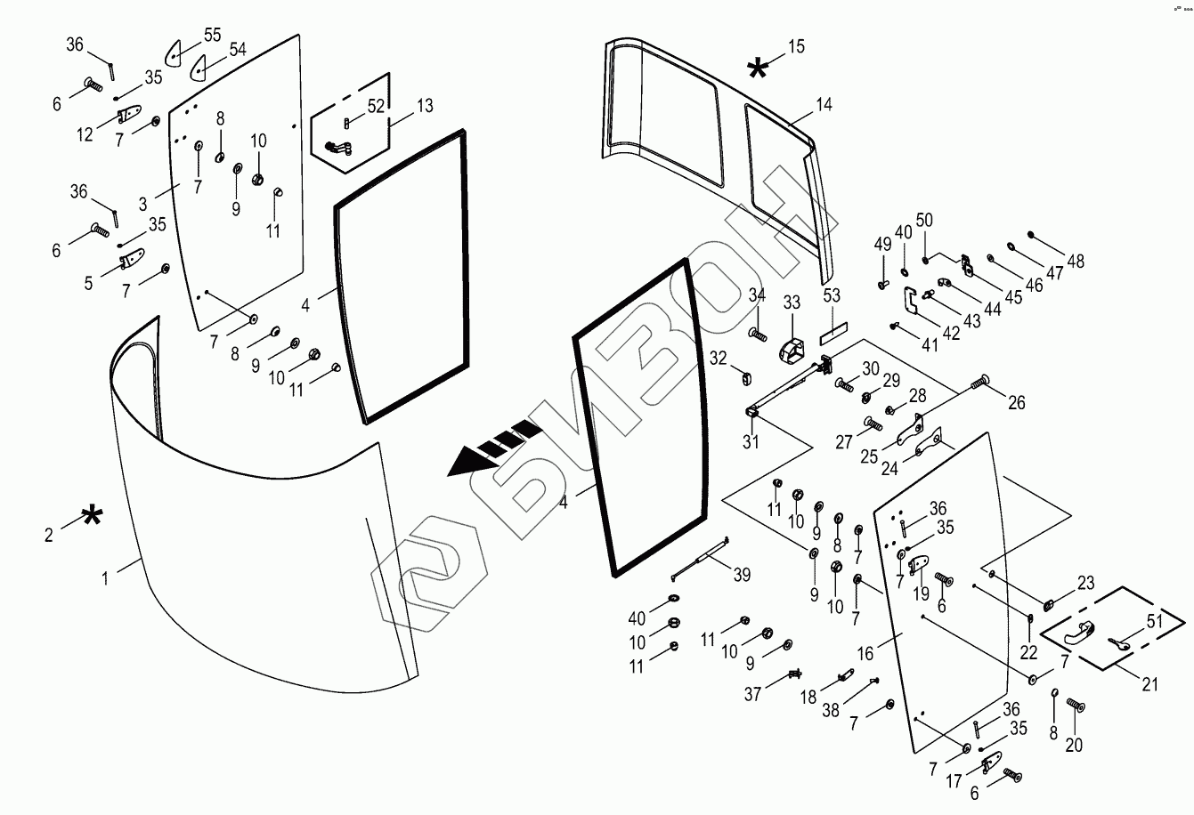 Графический каталог запасных частей к технике: KRONE BIG-X-480. Cab - glazing