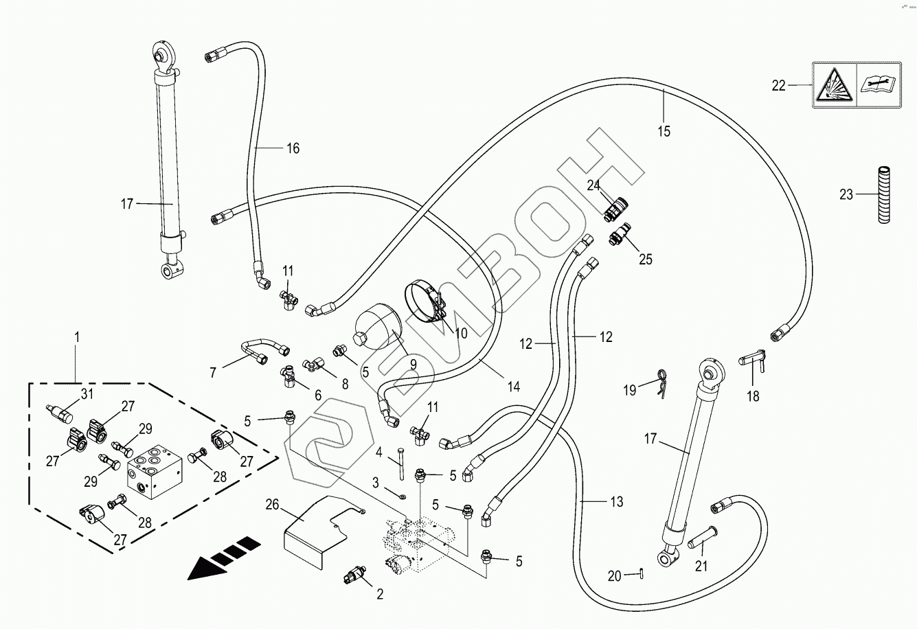Графический каталог запасных частей к технике: KRONE BIG-X-480. Hydraulics - additional axis