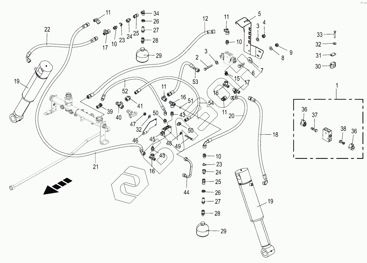 Графический каталог запасных частей к технике: KRONE BIG-X-480. Hydraulics - axle level