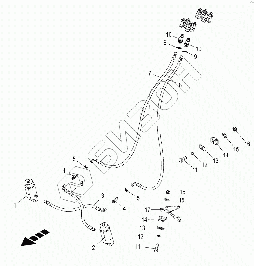 Графический каталог запасных частей к технике: KRONE BIG-X-480. Hydraulics - pendulum tube