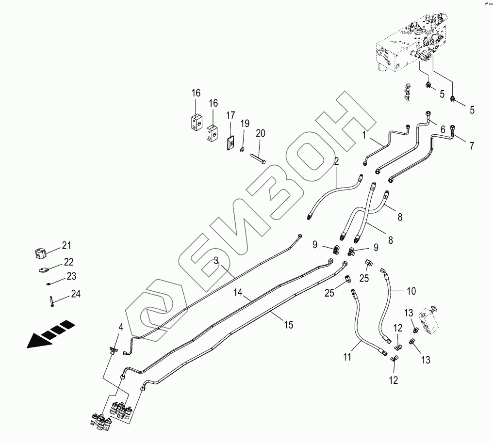 Графический каталог запасных частей к технике: KRONE BIG-X-480. Hydraulics - pressure lines - front attachment