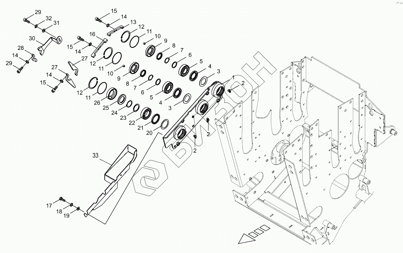 Графический каталог запасных частей к технике: KRONE BIG-X-480. Lower feed roller bearing