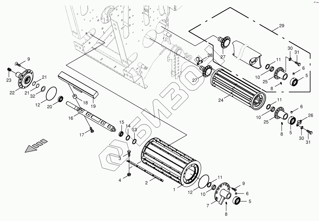 Графический каталог запасных частей к технике: KRONE BIG-X-480. Lower feed rollers