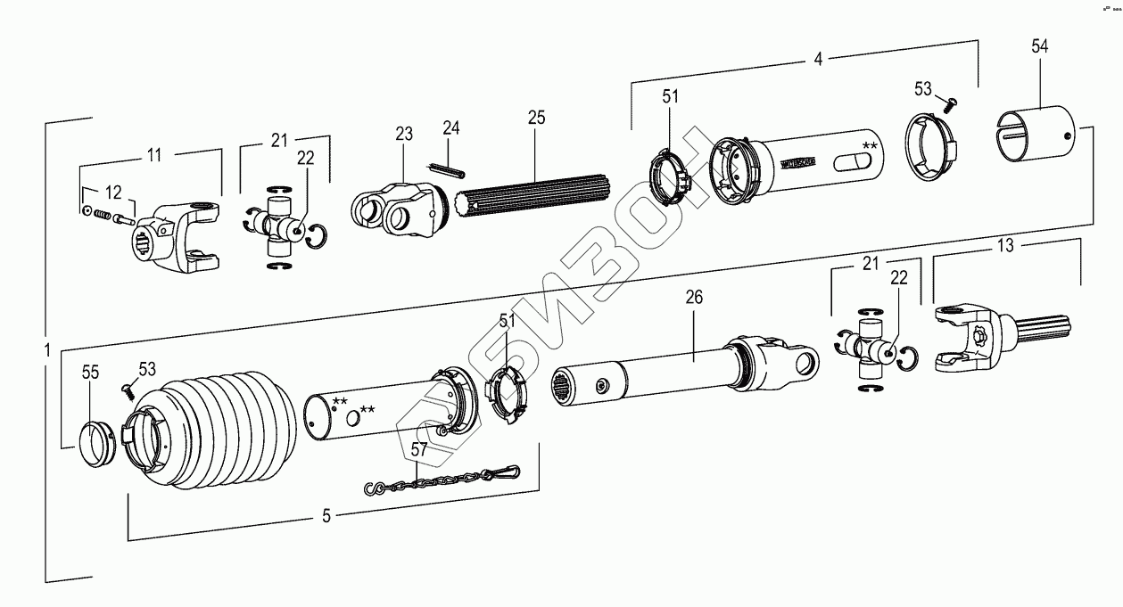 Графический каталог запасных частей к технике: KRONE BIG-X-480. P.T.O shafts