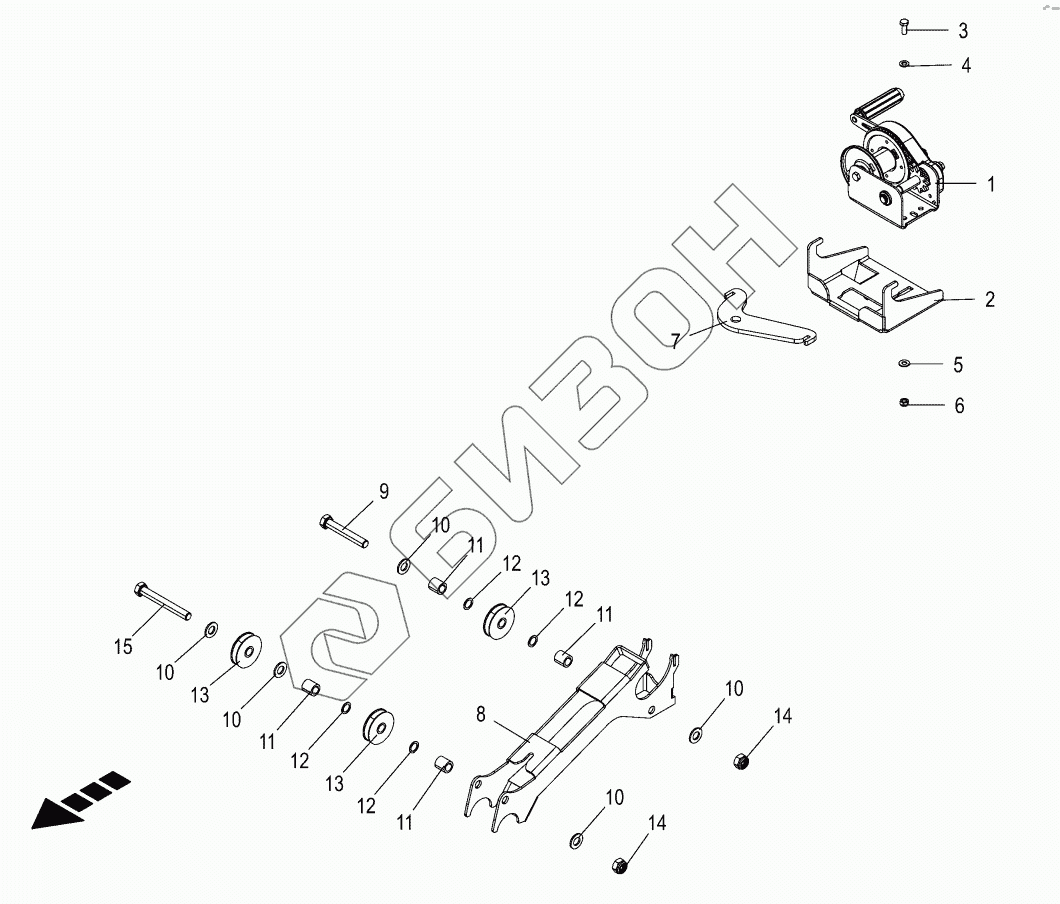 Графический каталог запасных частей к технике: KRONE BIG-X-480. Rope winch / additional axis