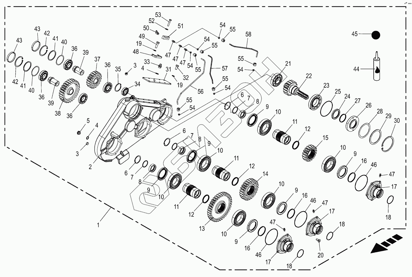 Графический каталог запасных частей к технике: KRONE BIG-X-480. Top roller gearbox