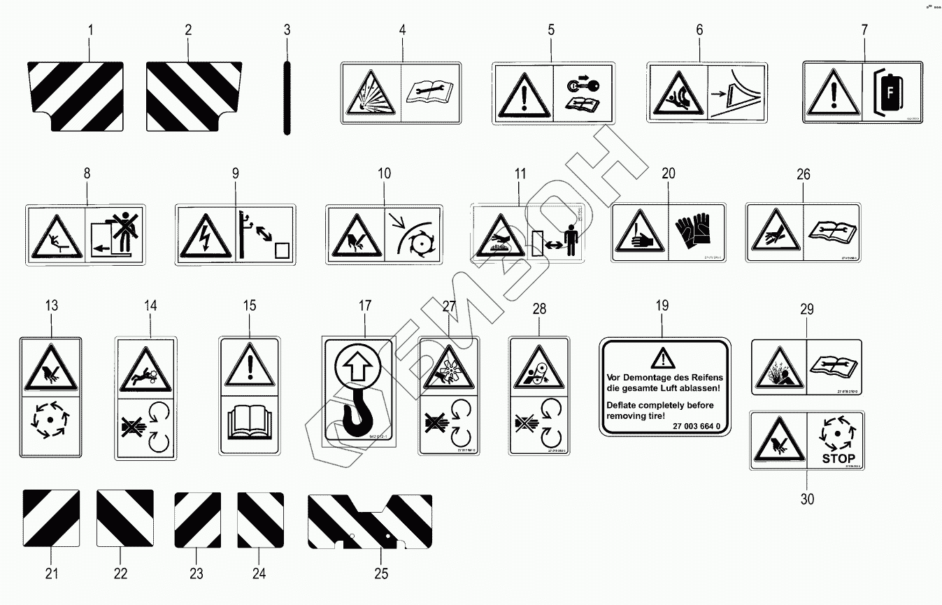 Графический каталог запасных частей к технике: KRONE BIG-X-480. Warning signs