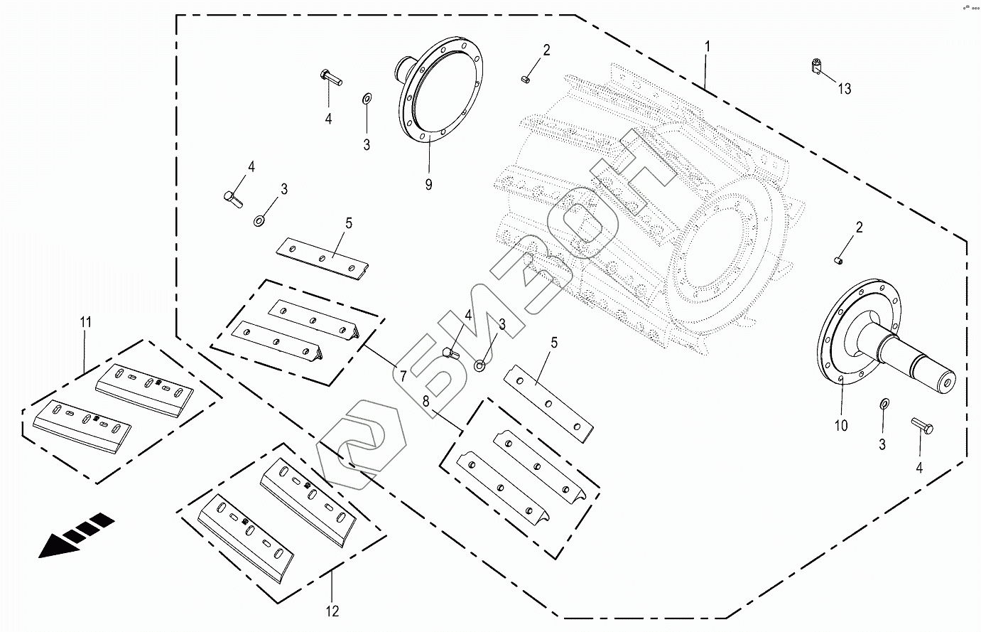 Графический каталог запасных частей к технике: KRONE BIG-X-480. Chopping drum - 20 Knifes
