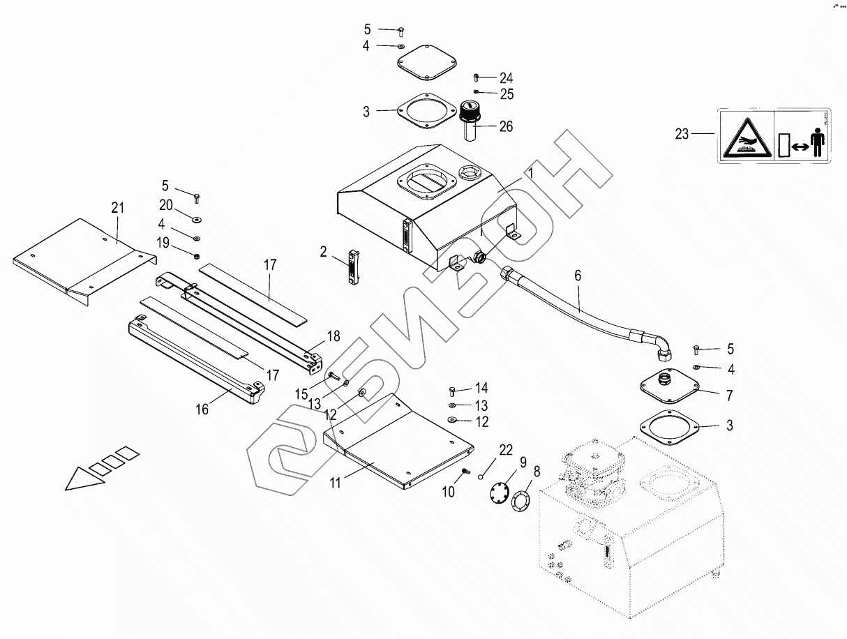 Графический каталог запасных частей к технике: KRONE BIG-X-480. Hydraulics - auxiliary tank