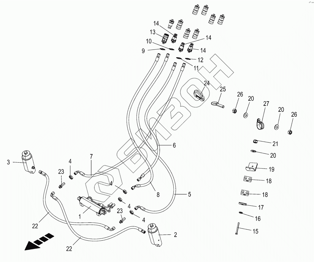 Графический каталог запасных частей к технике: KRONE BIG-X-480. Hydraulics - pendulum equalizer
