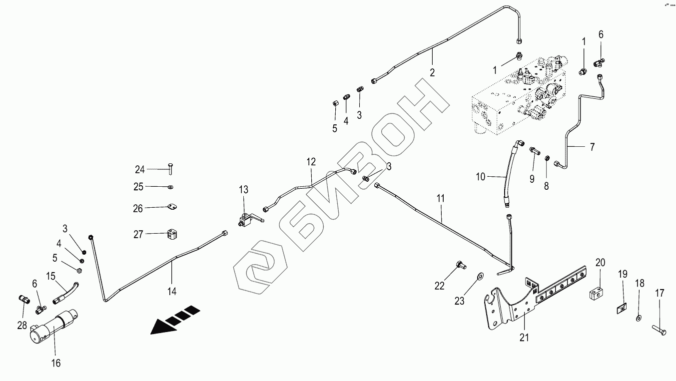 Графический каталог запасных частей к технике: KRONE BIG-X-480. Hydraulics - pressure lines -front