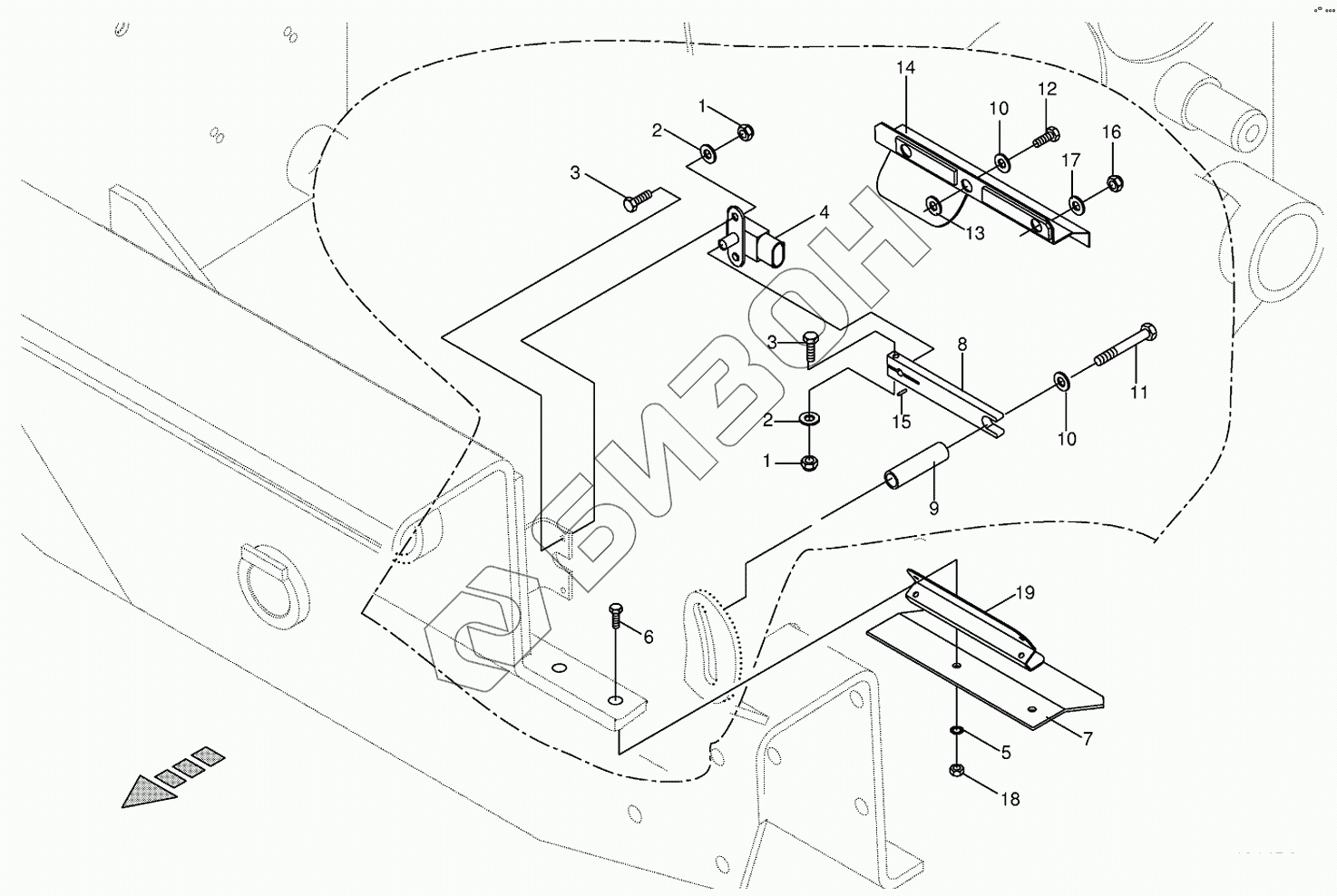Графический каталог запасных частей к технике: KRONE BIG-X-500. Angle sensor-Pivoting frame