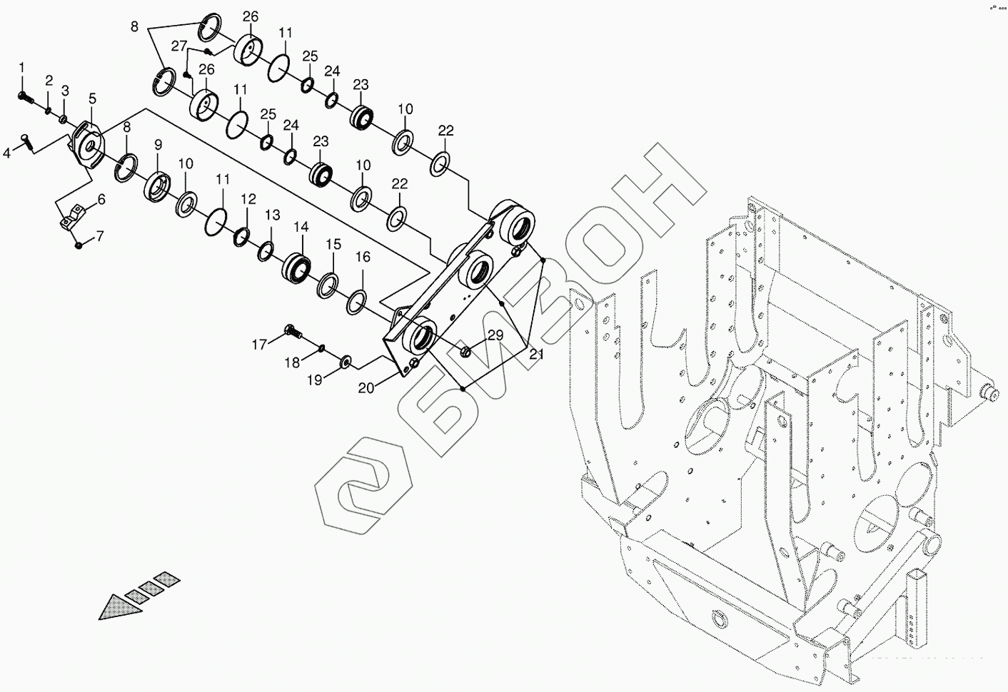Графический каталог запасных частей к технике: KRONE BIG-X-500. Lower feed roller bearing