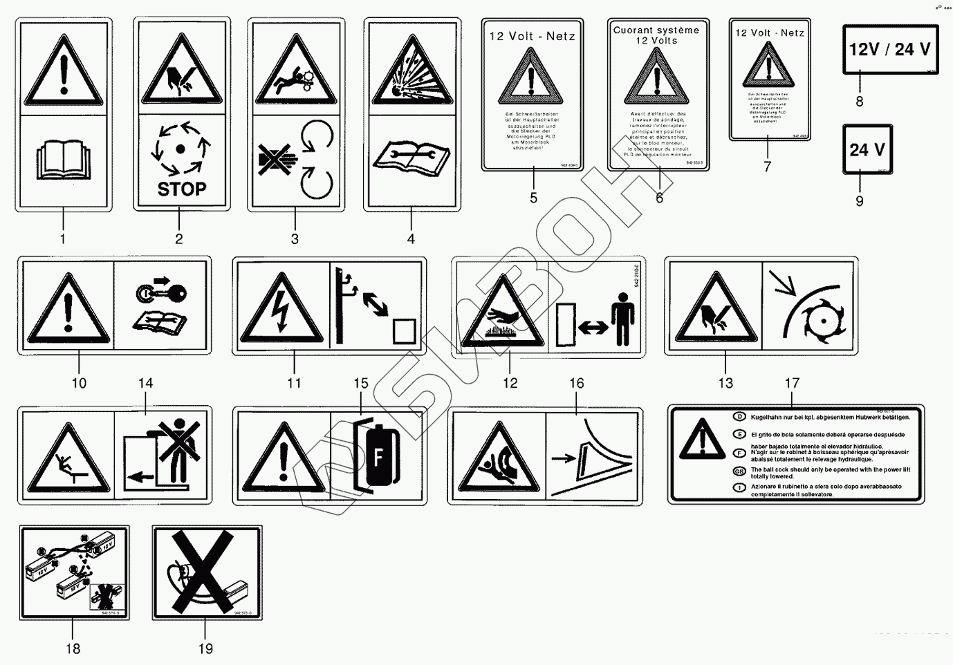 Графический каталог запасных частей к технике: KRONE BIG-X-500. Warning signs
