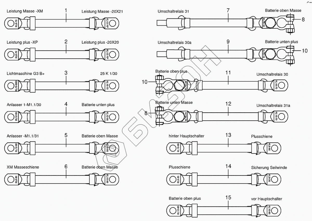 Графический каталог запасных частей к технике: KRONE BIG-X-500. Battery and ground cable