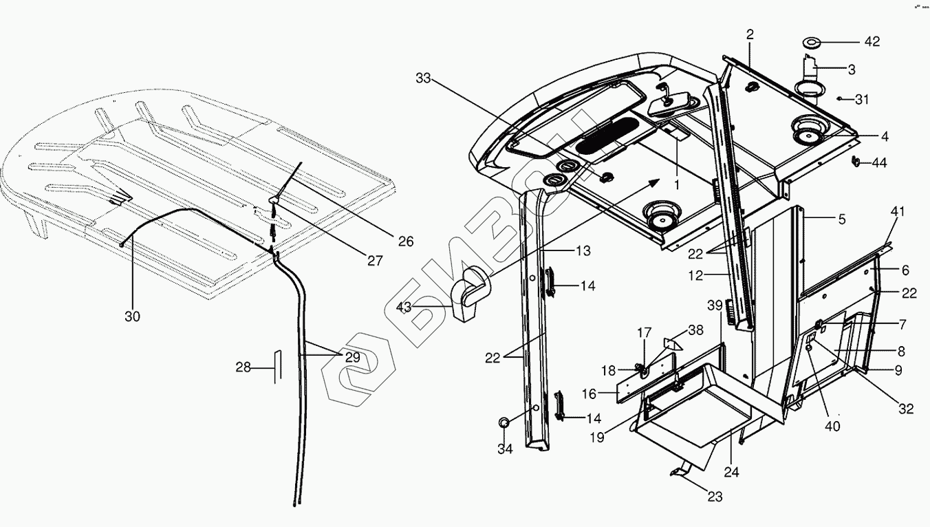 Графический каталог запасных частей к технике: KRONE BIG-X-500. Cab-Cab lining, aerial