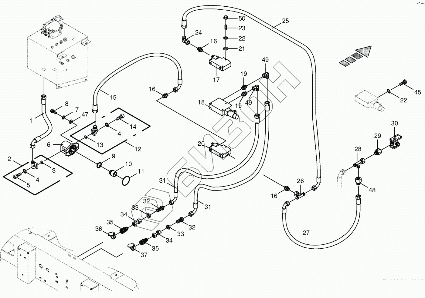 Графический каталог запасных частей к технике: KRONE BIG-X-500. Hydraulics-additive connection back