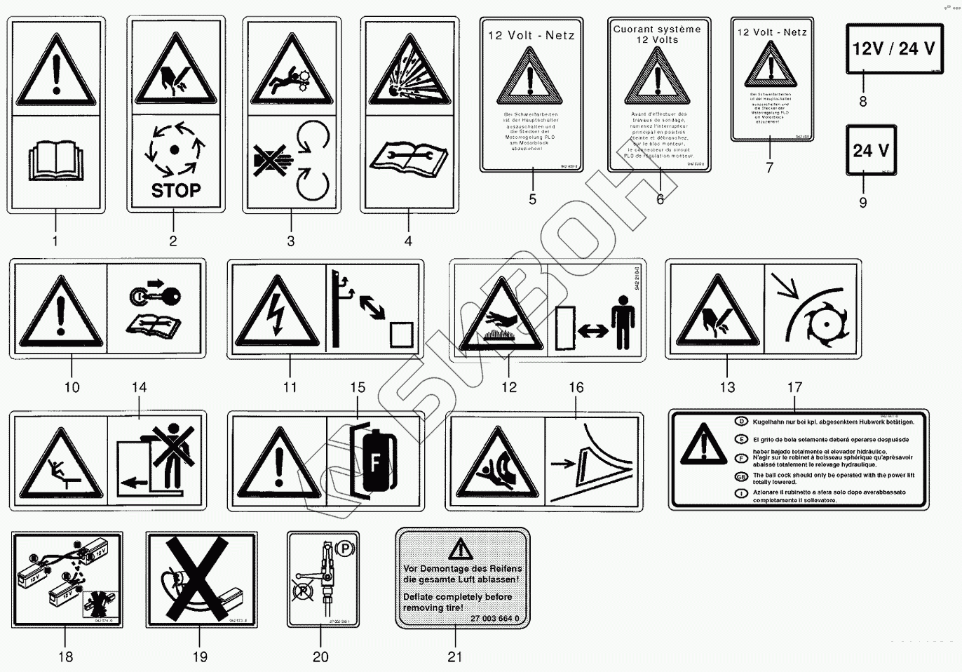 Графический каталог запасных частей к технике: KRONE BIG-X-500. Warning signs