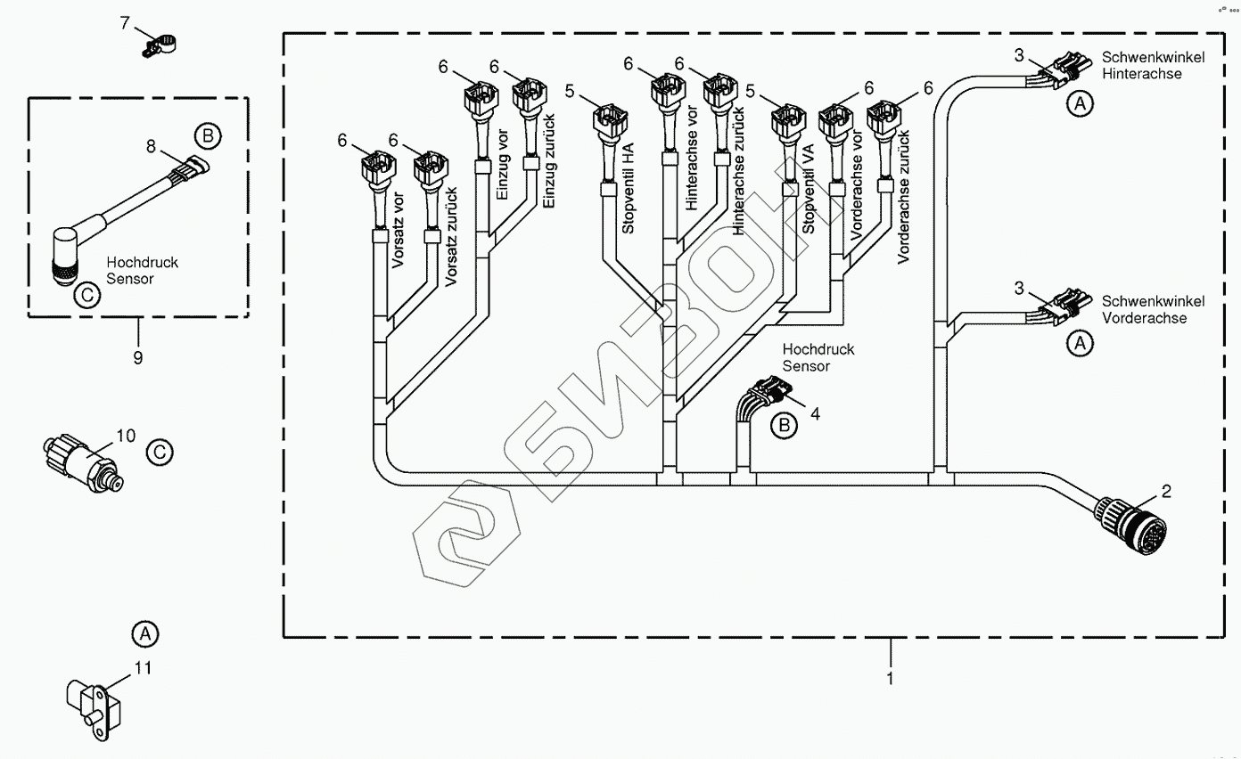 Графический каталог запасных частей к технике: KRONE BIG-X-500. Wiring loom-hydraulic pumps