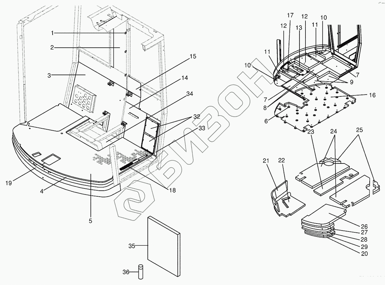 Графический каталог запасных частей к технике: KRONE BIG-X-500. Cab-Sound deadening