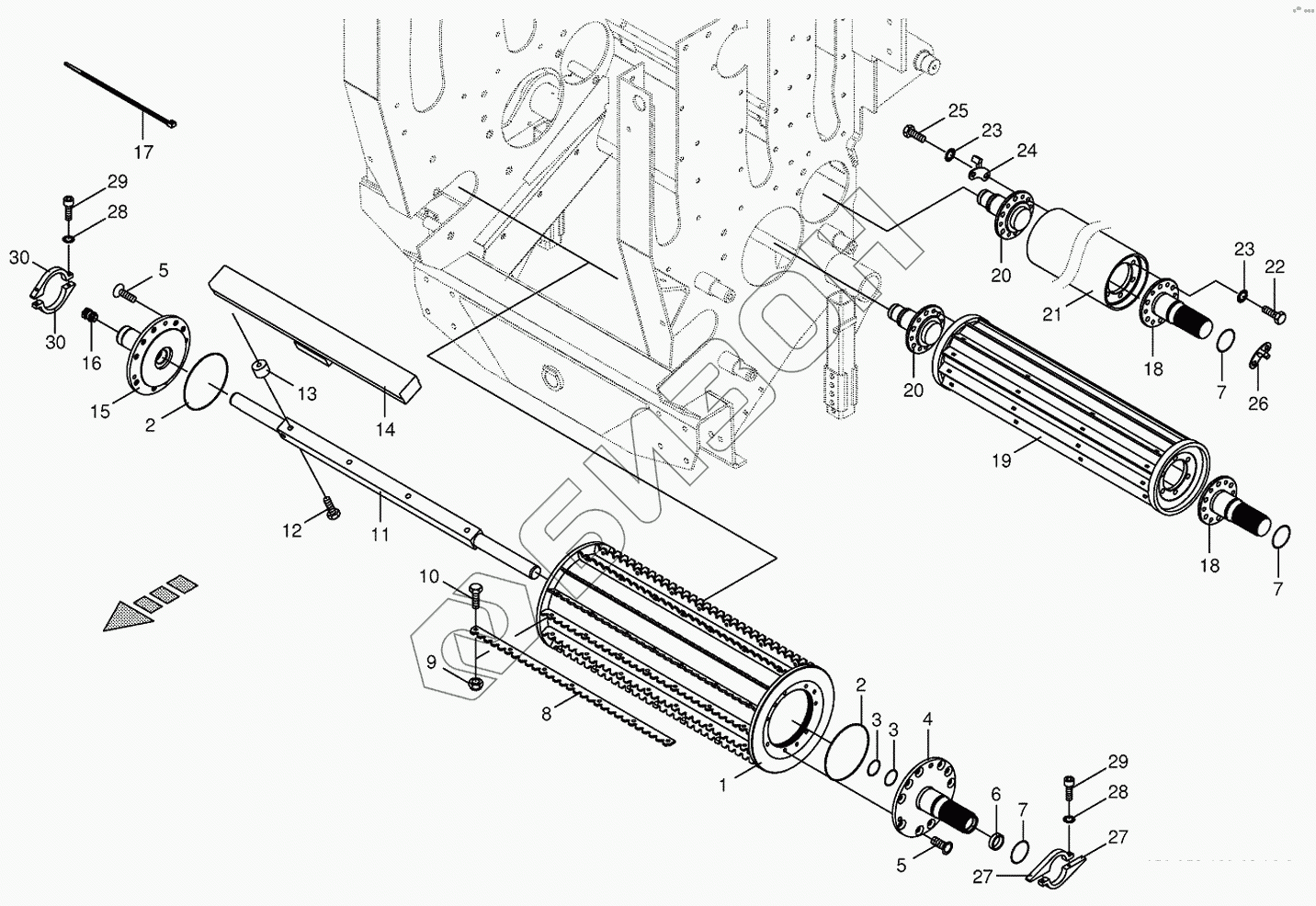 Графический каталог запасных частей к технике: KRONE BIG-X-500. Lower feed rollers