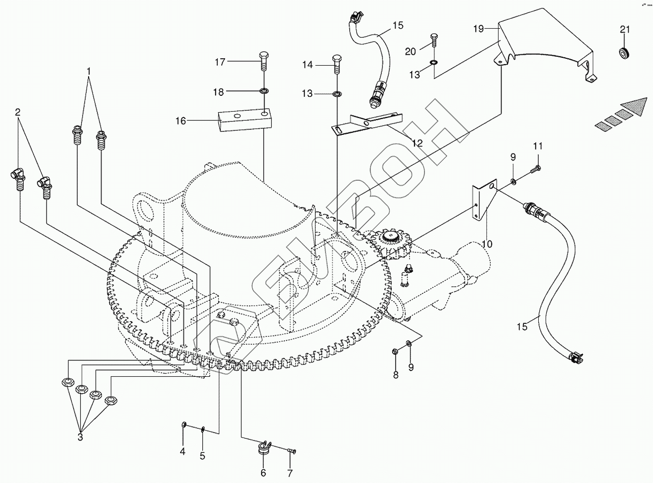 Графический каталог запасных частей к технике: KRONE BIG-X-500. Mounting parts discharge chute rotation