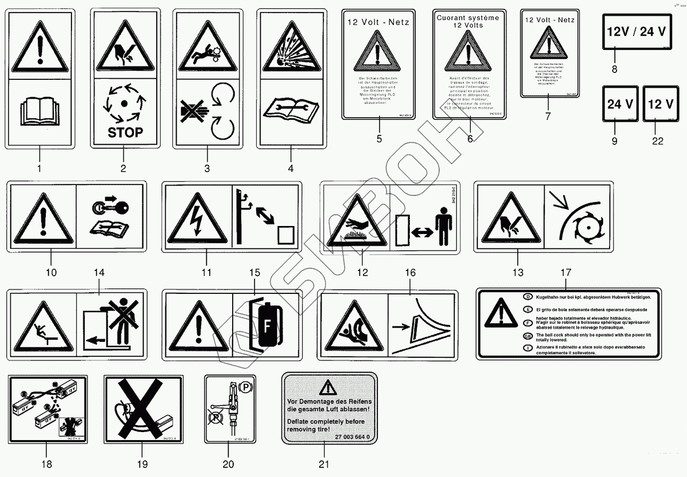 Графический каталог запасных частей к технике: KRONE BIG-X-500. Warning signs