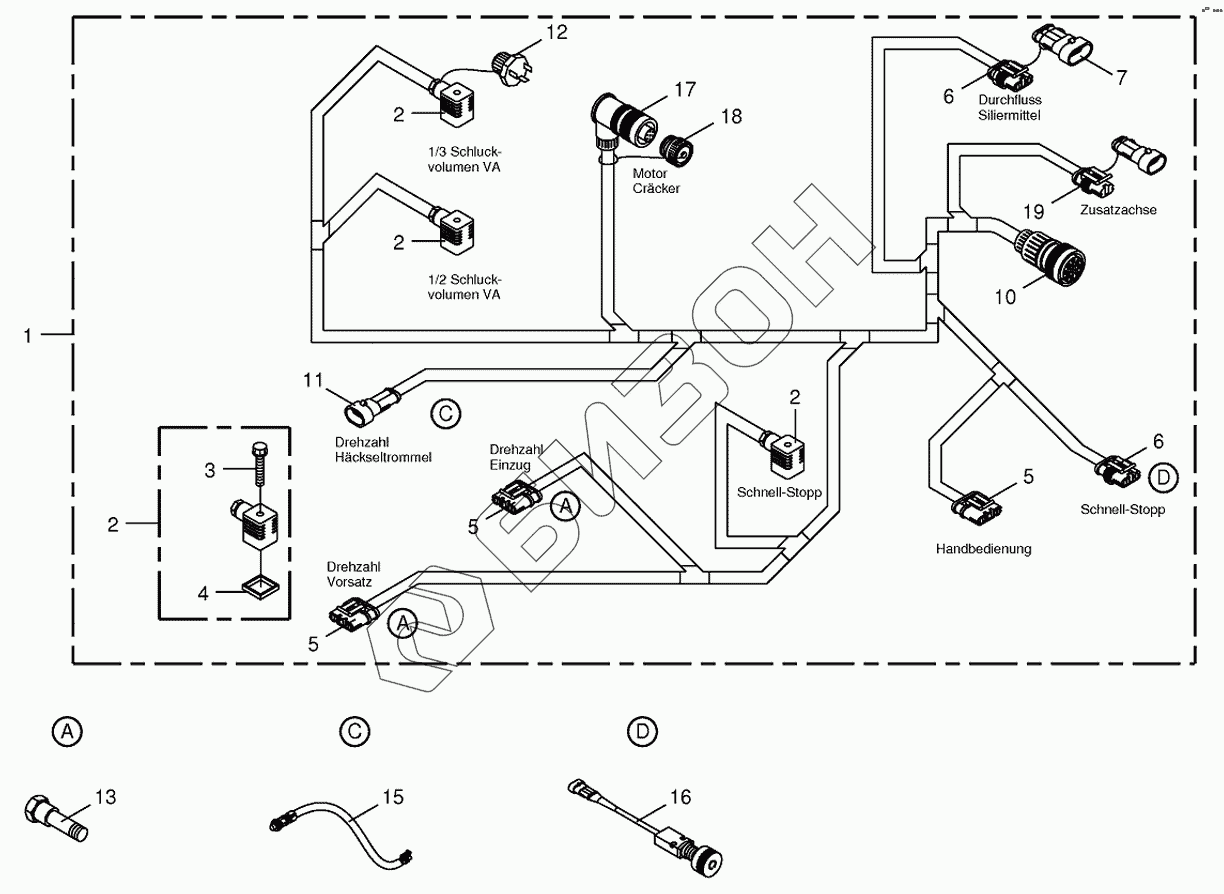 Графический каталог запасных частей к технике: KRONE BIG-X-500. Wiring Harness-lateral left