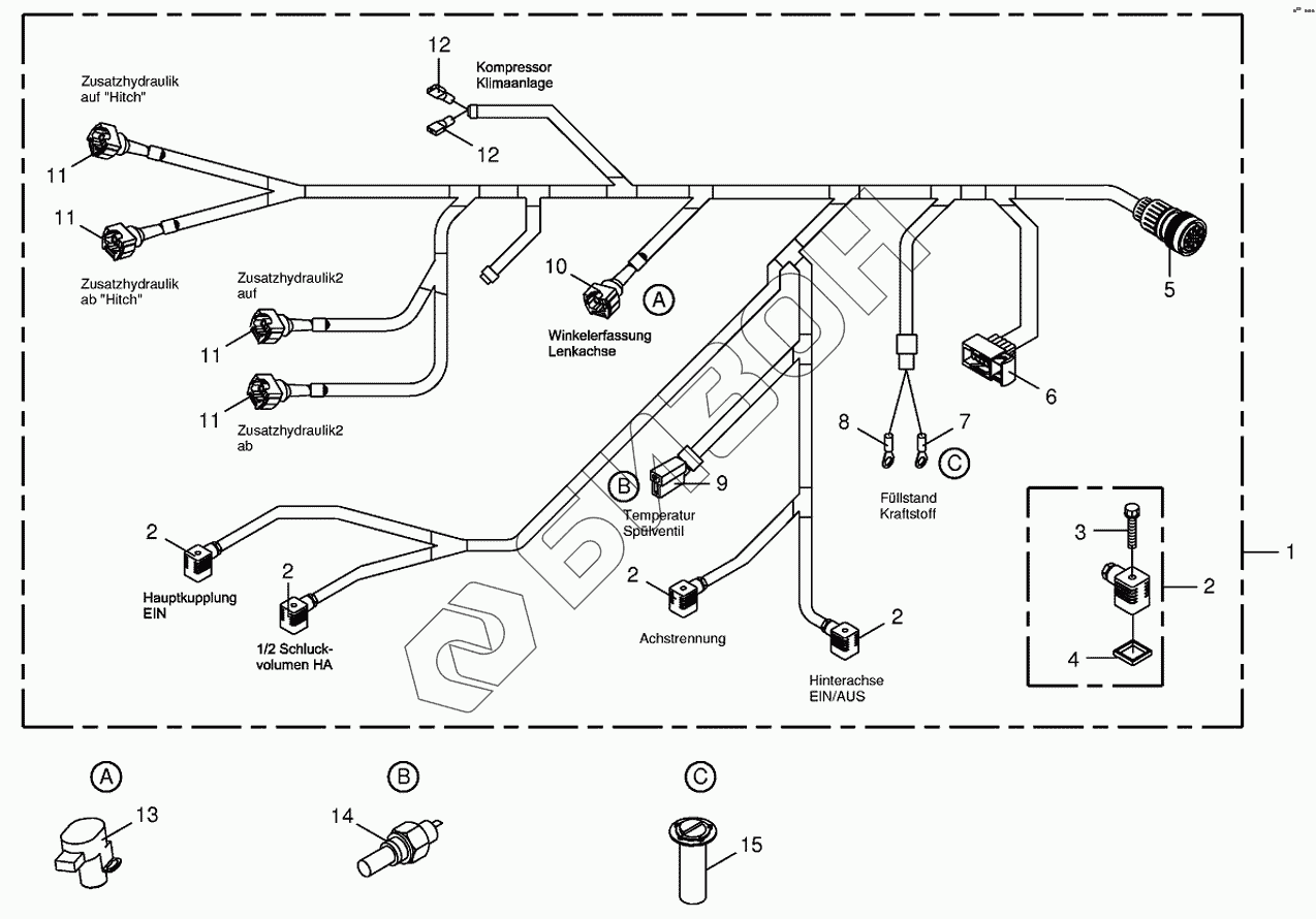 Графический каталог запасных частей к технике: KRONE BIG-X-500. Wiring Harness-rear/drive valve