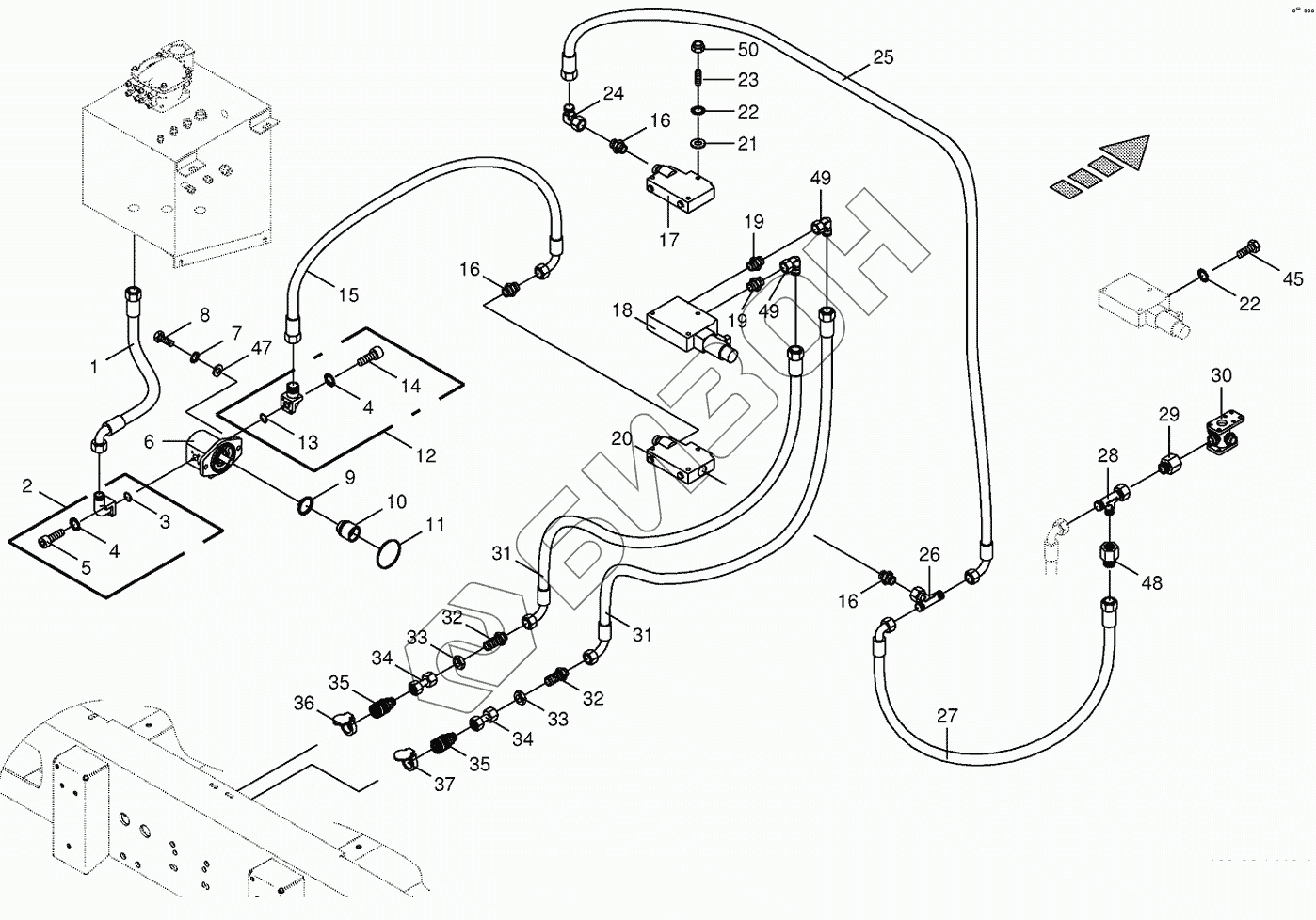 Графический каталог запасных частей к технике: KRONE BIG-X-500. Hydraulics-additive connection back