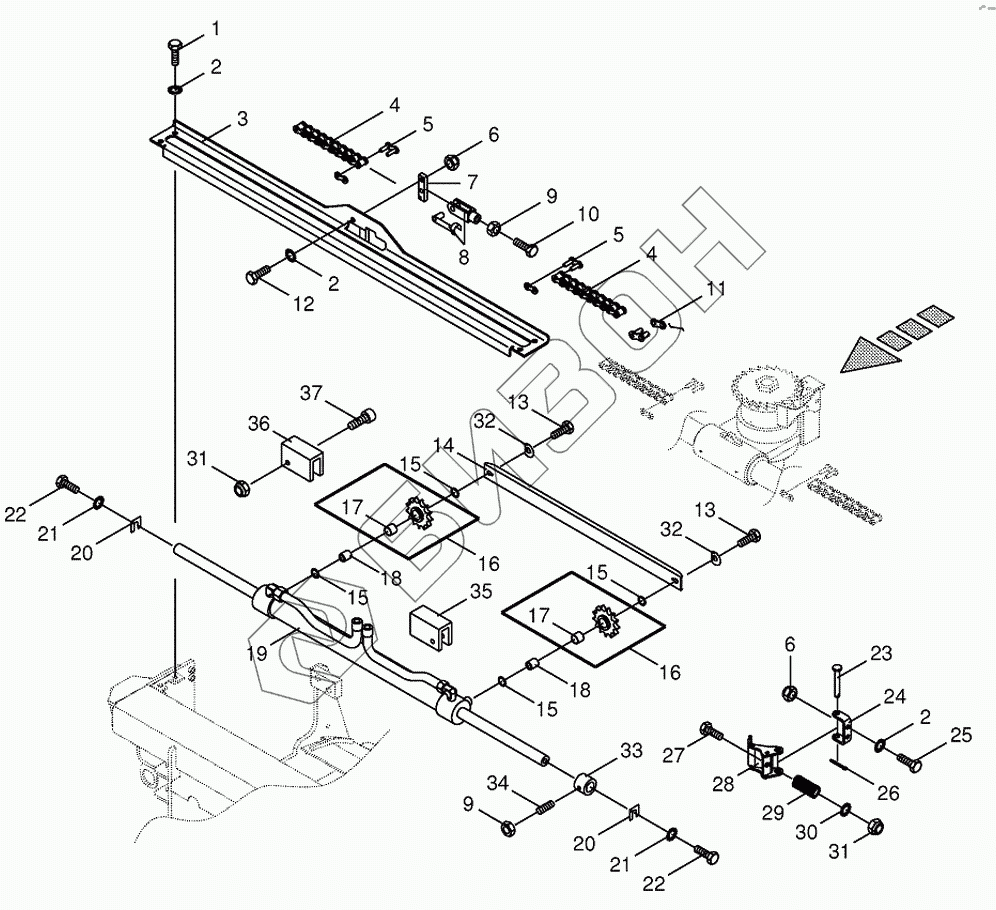 Графический каталог запасных частей к технике: KRONE BIG-X-500. Sharpening device drive