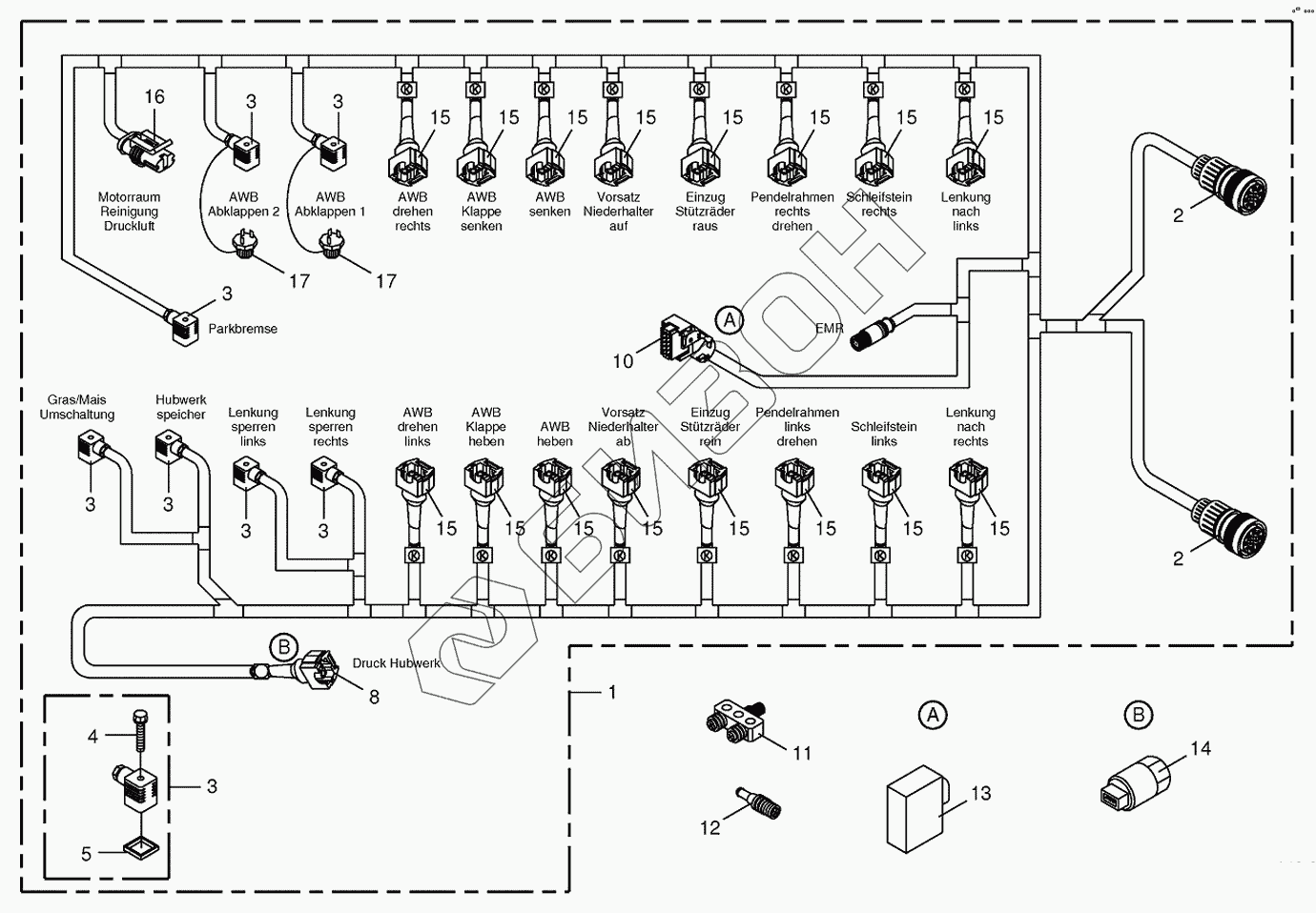 Графический каталог запасных частей к технике: KRONE BIG-X-500. Wiring Harness-valve block
