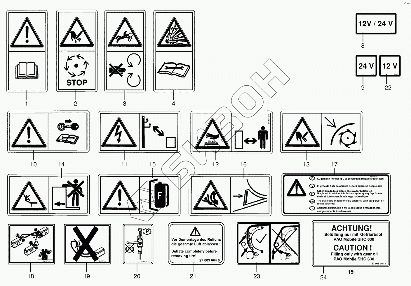 Графический каталог запасных частей к технике: KRONE BIG-X-500. Warning signs
