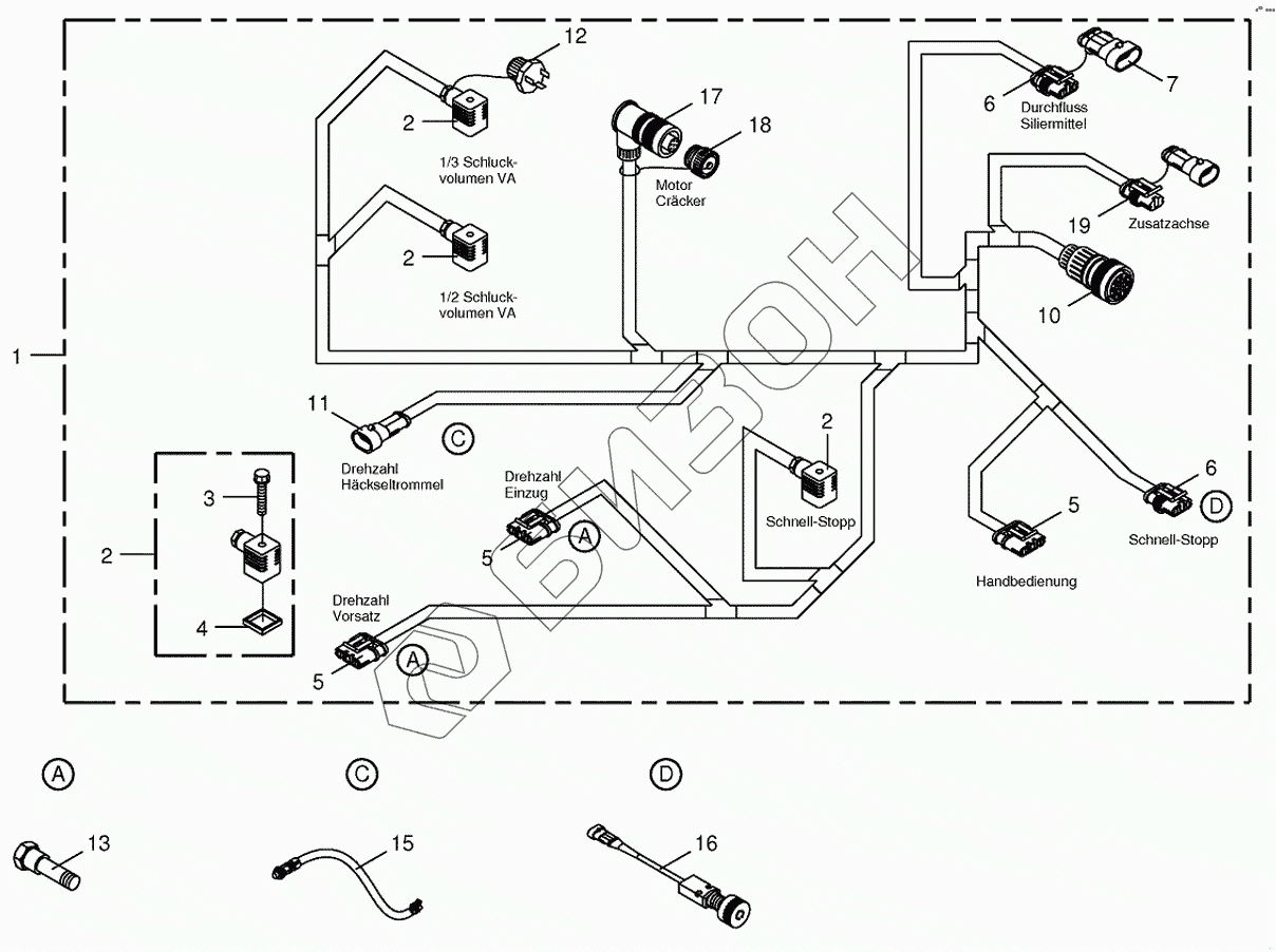 Графический каталог запасных частей к технике: KRONE BIG-X-500. Wiring Harness-lateral left
