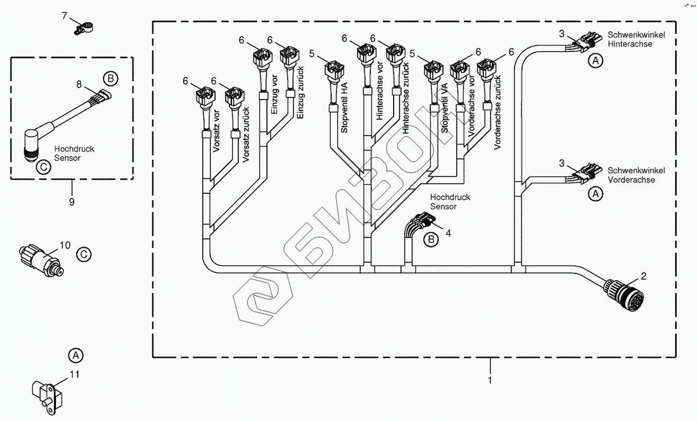 Графический каталог запасных частей к технике: KRONE BIG-X-500. Wiring loom-hydraulic pumps
