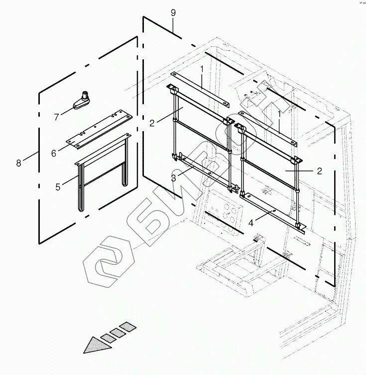 Графический каталог запасных частей к технике: KRONE BiG X 500. Rear blind / lateral blind