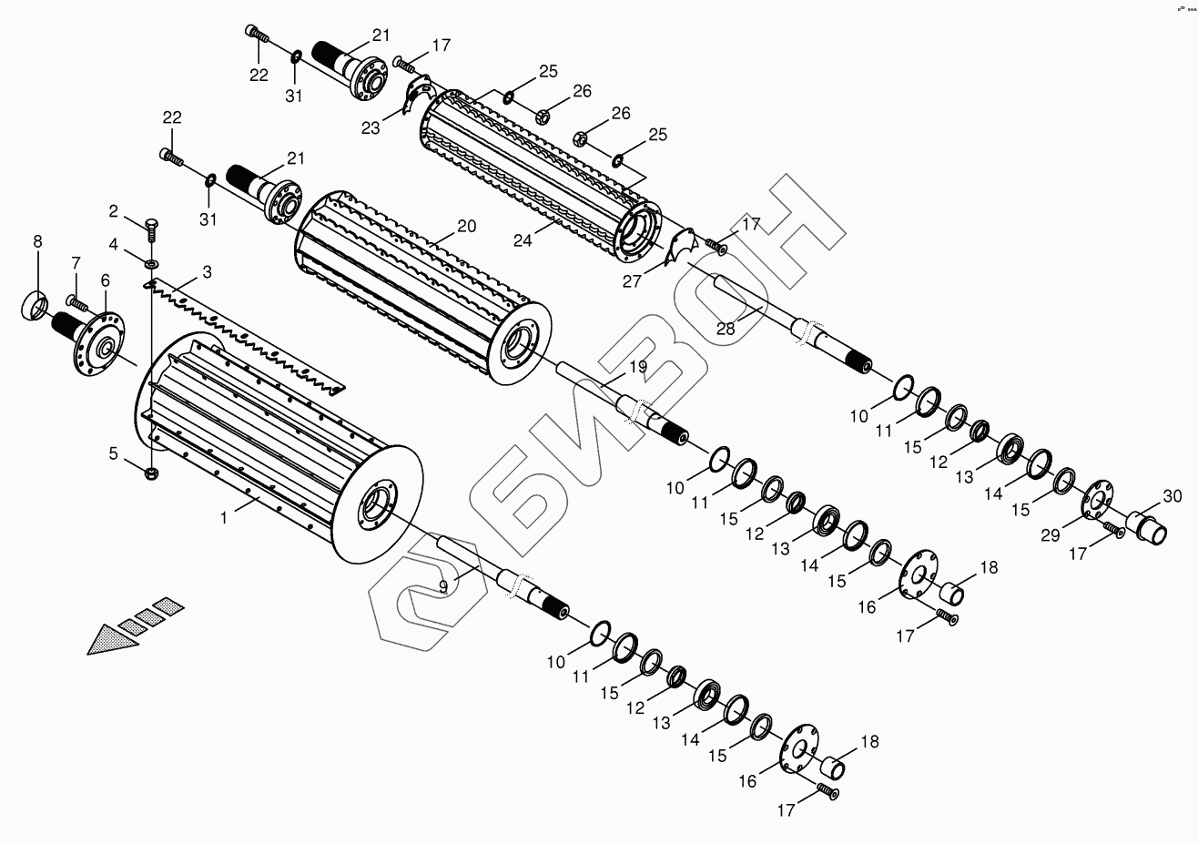 | 9 | 20 022 028 0 | Axle for precompression roller |