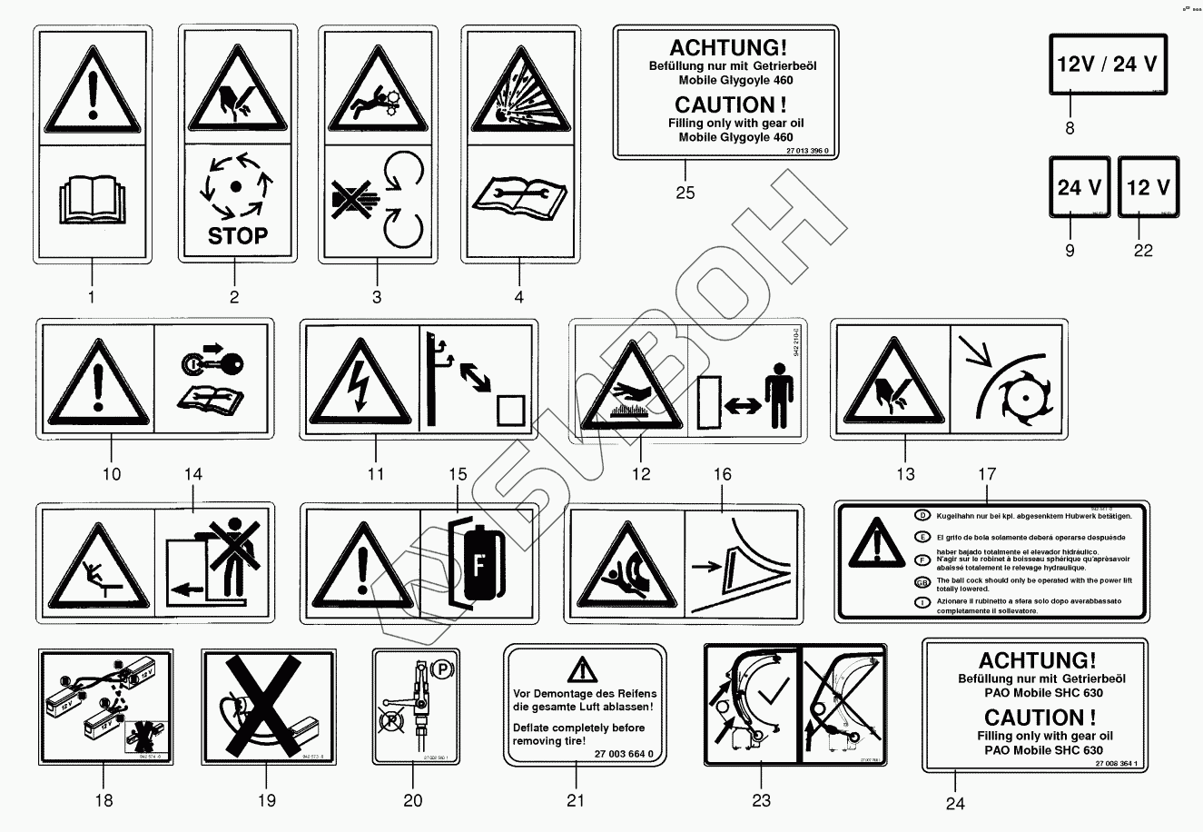 Графический каталог запасных частей к технике: KRONE BiG X 500. Warning signs