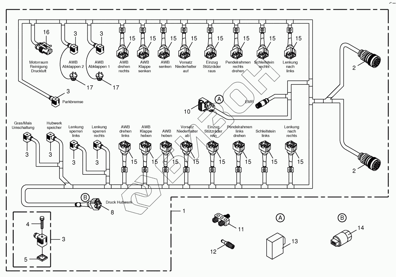Графический каталог запасных частей к технике: KRONE BiG X 500. Wiring Harness - valve block