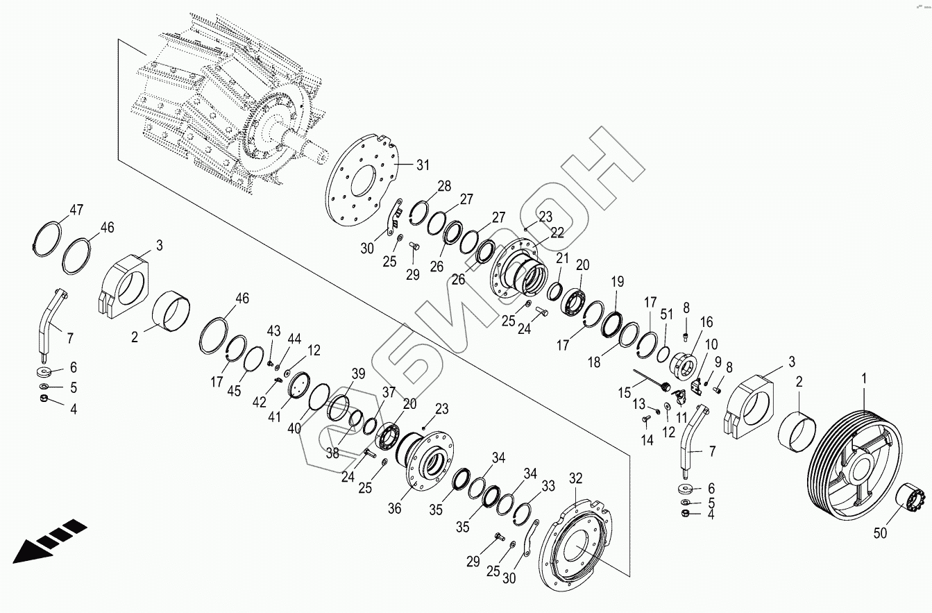 Графический каталог запасных частей к технике: KRONE BIG-X-530. Chopping drum bearing / counter bearing