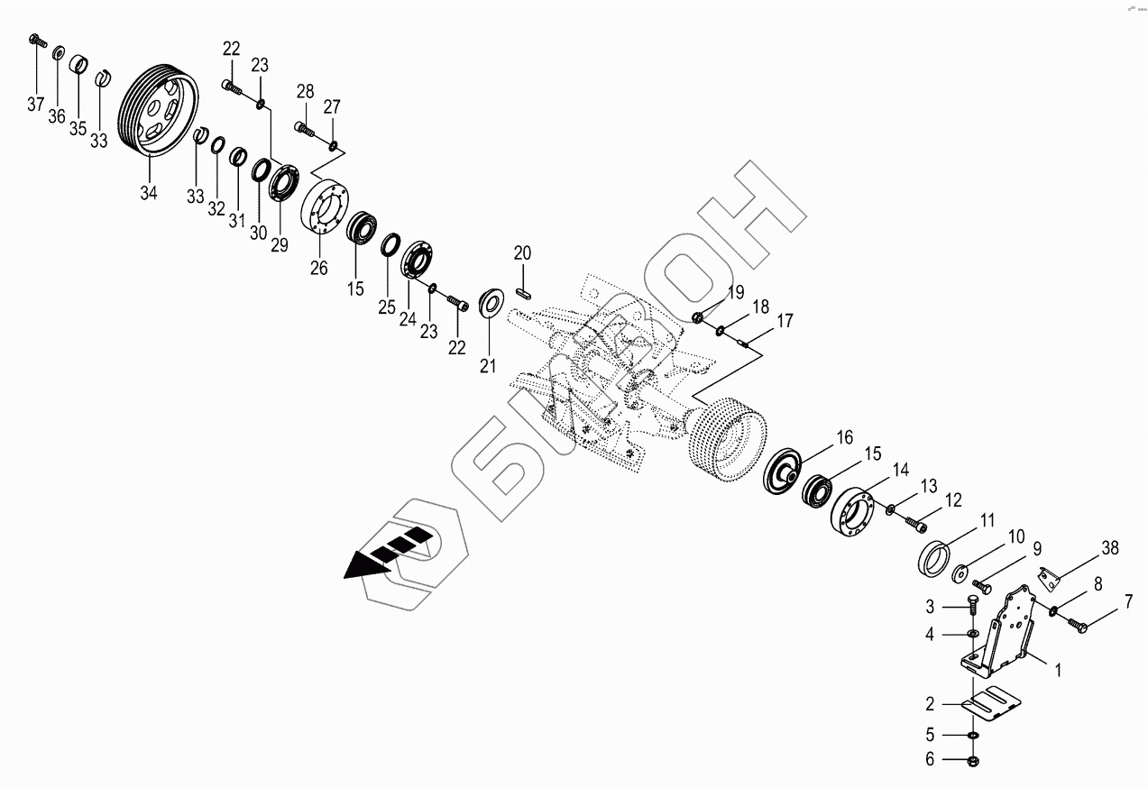 Графический каталог запасных частей к технике: KRONE BIG-X-530. Discharge accelerator / bearing