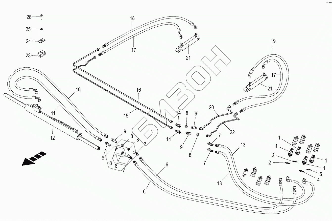 Графический каталог запасных частей к технике: KRONE BIG-X-530. Hydraulics - sharpening device