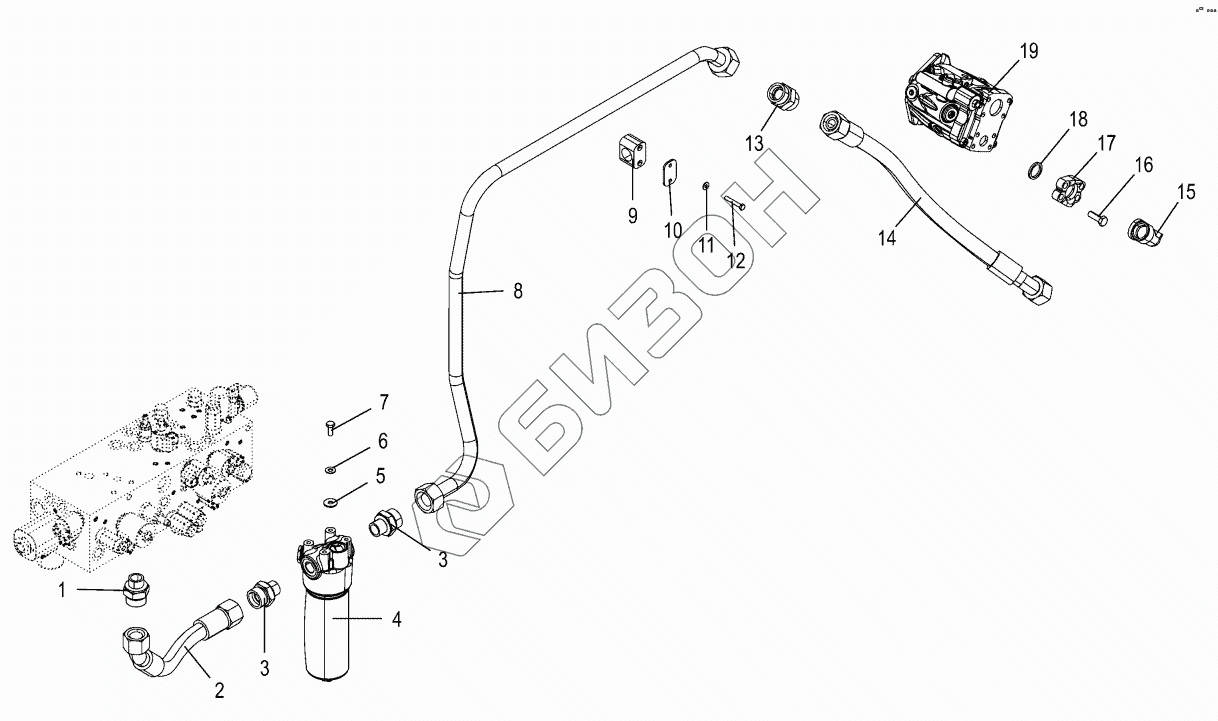 Графический каталог запасных частей к технике: KRONE BIG-X-530. Hydraulics - pressure lines / pump