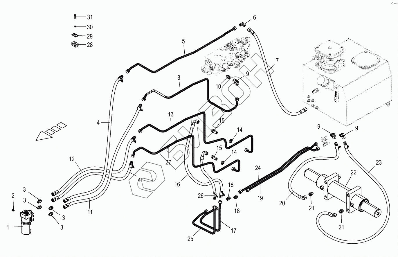 Графический каталог запасных частей к технике: KRONE BIG-X-530. Hydraulics - steering