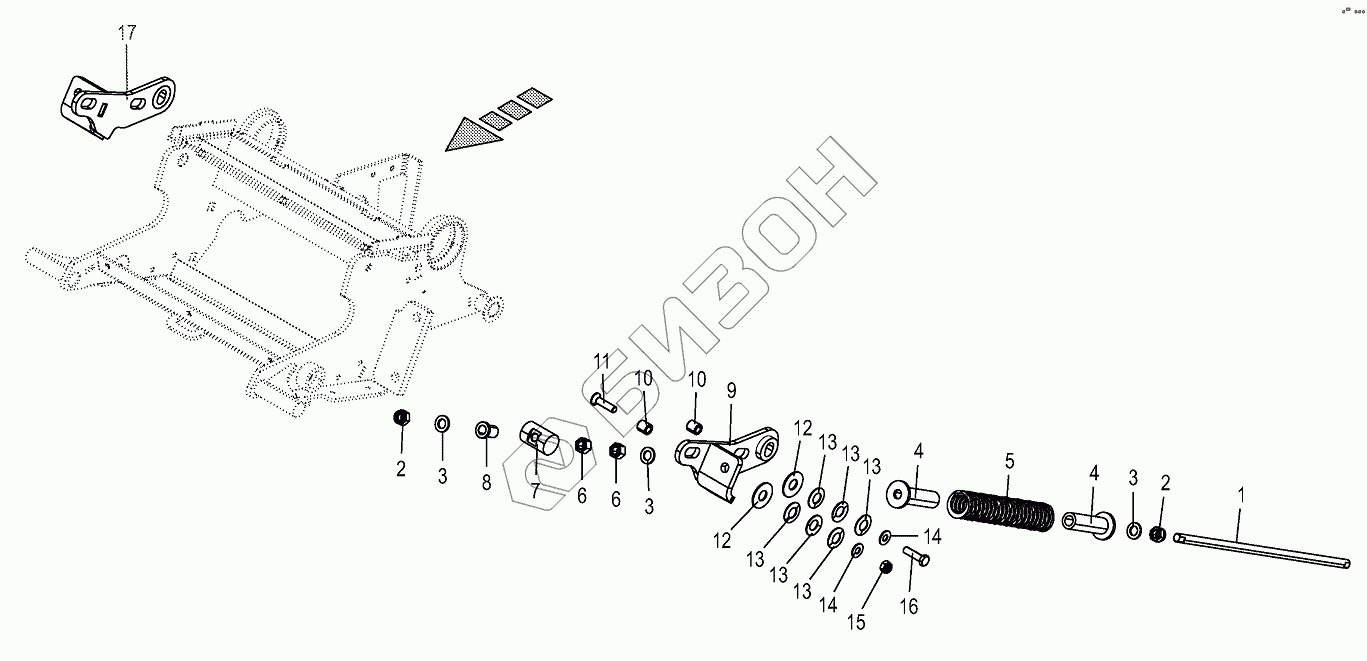 Графический каталог запасных частей к технике: KRONE BIG-X-530. Spring - cracker housing